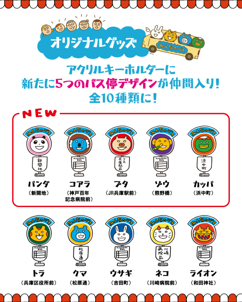 オリジナルグッズは公式オンラインサイトまたはみんなのバス内、神戸マツダ・イベントスクエアにて販売中。